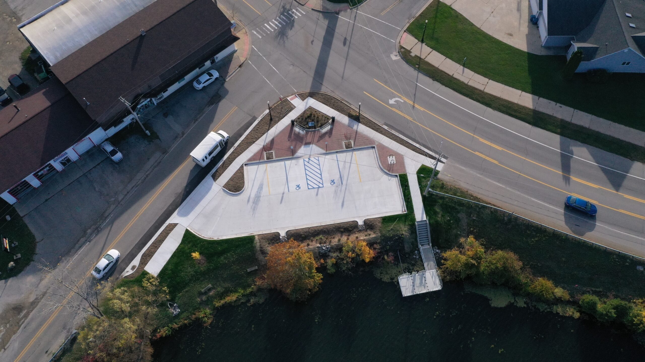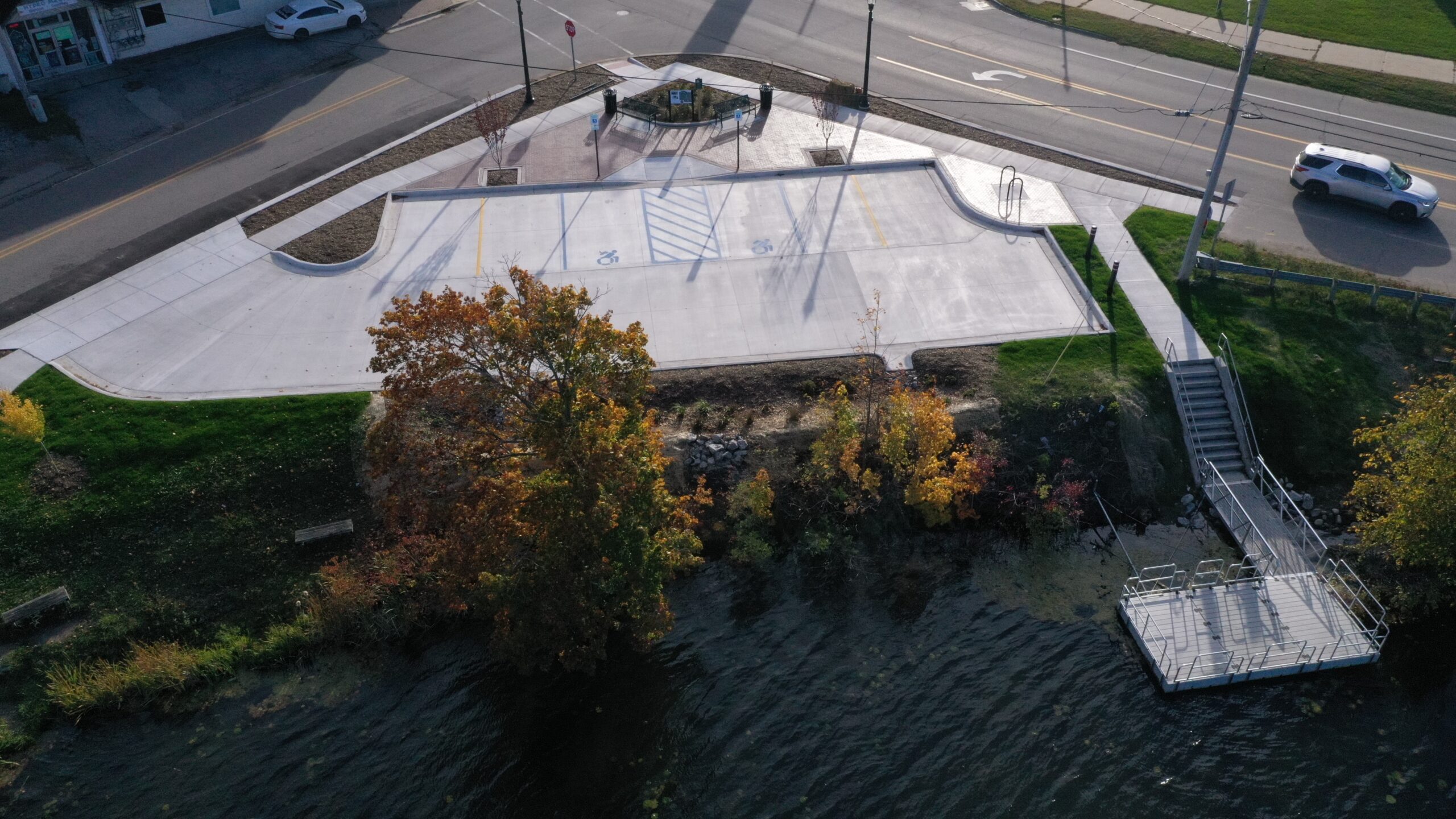 A grant from the Michigan DNR has allowed us to develop a trailhead park at the corner of Ross and Porter Streets. Features include parking, seating, a dock, and landscaping to enhance community access and usability.